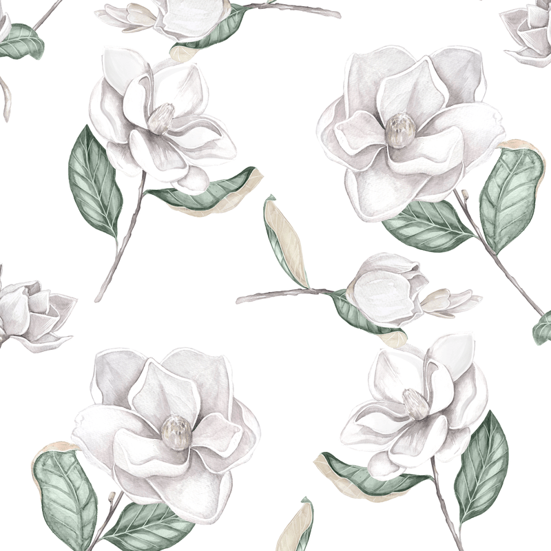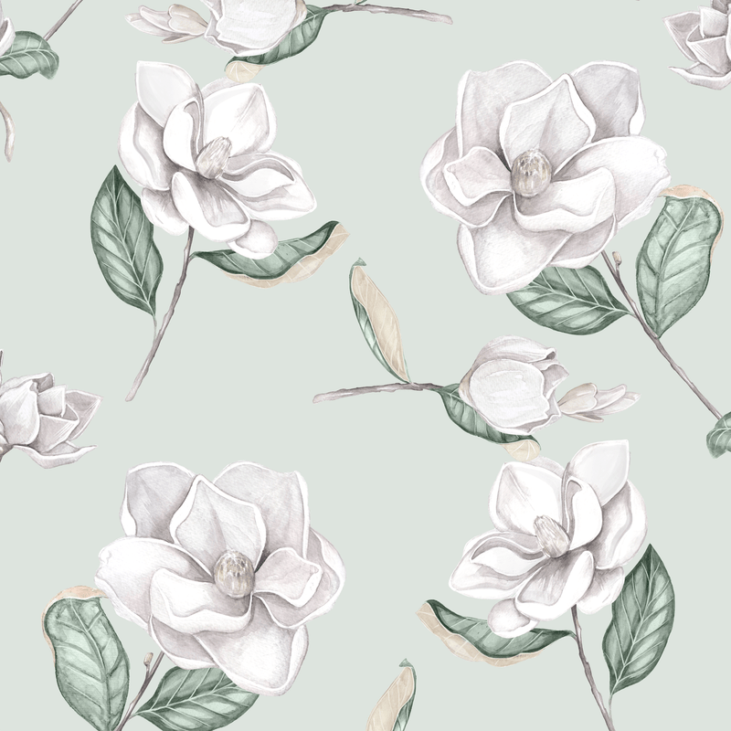 Magnolia Flowers Soft Green Design Collection — where Southern country charm meets timeless elegance. This collection is inspired by the gentle beauty of white magnolia blossoms and the soothing tones of soft green, creating a look that’s both classic and inviting.